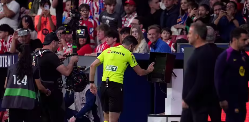 Recently, Real Madrid’s official TV channel has, unusually, found itself on the same side as Atlético Madrid, launching a fierce attack on refereeing standards in La Liga. In one of its programs, the channel analyzed a controversial incident involving Barcelona defender Gerard Martín during a match against Atlético, bluntly accusing the refereeing body of serious “double standards” and even hinting at an invisible “hidden hand” influencing matches.